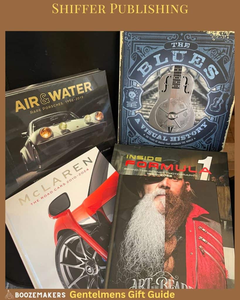 All books are available in hardcover from Schiffer Publishing and make exceptional gifts for gentlemen who appreciate cars, music, watches, and unique artistry.